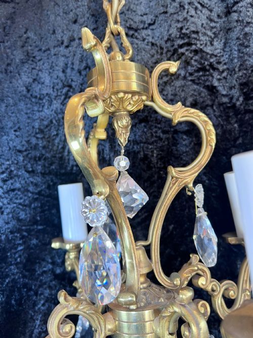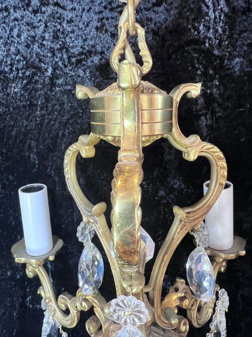 H45cm x W45cm, this is the height of the chandelier only without the chain and the ceiling rose which comes with the chandelier and can be adjusted to individual requirements. Restored, rewired, PAT tested and ready to hang.