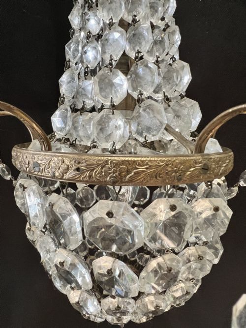 We have a set of three one light pretty chandeliers, Two are an exact pair with a slightly smaller one (by 10cm height)., We can sell as a set of three for £1,000 or split as a pair (£750) and a single (£350).