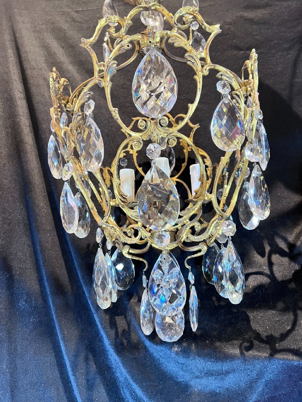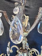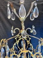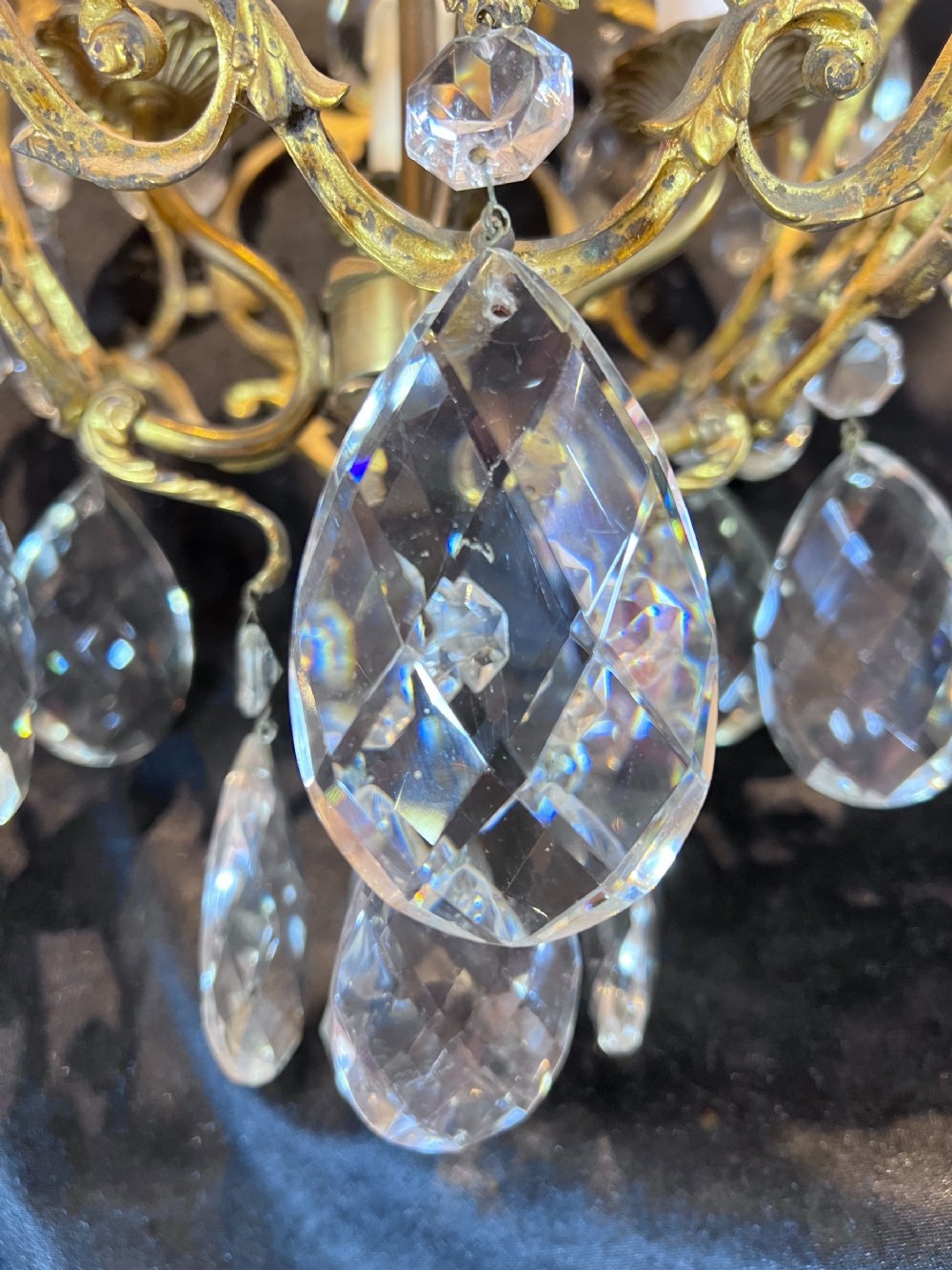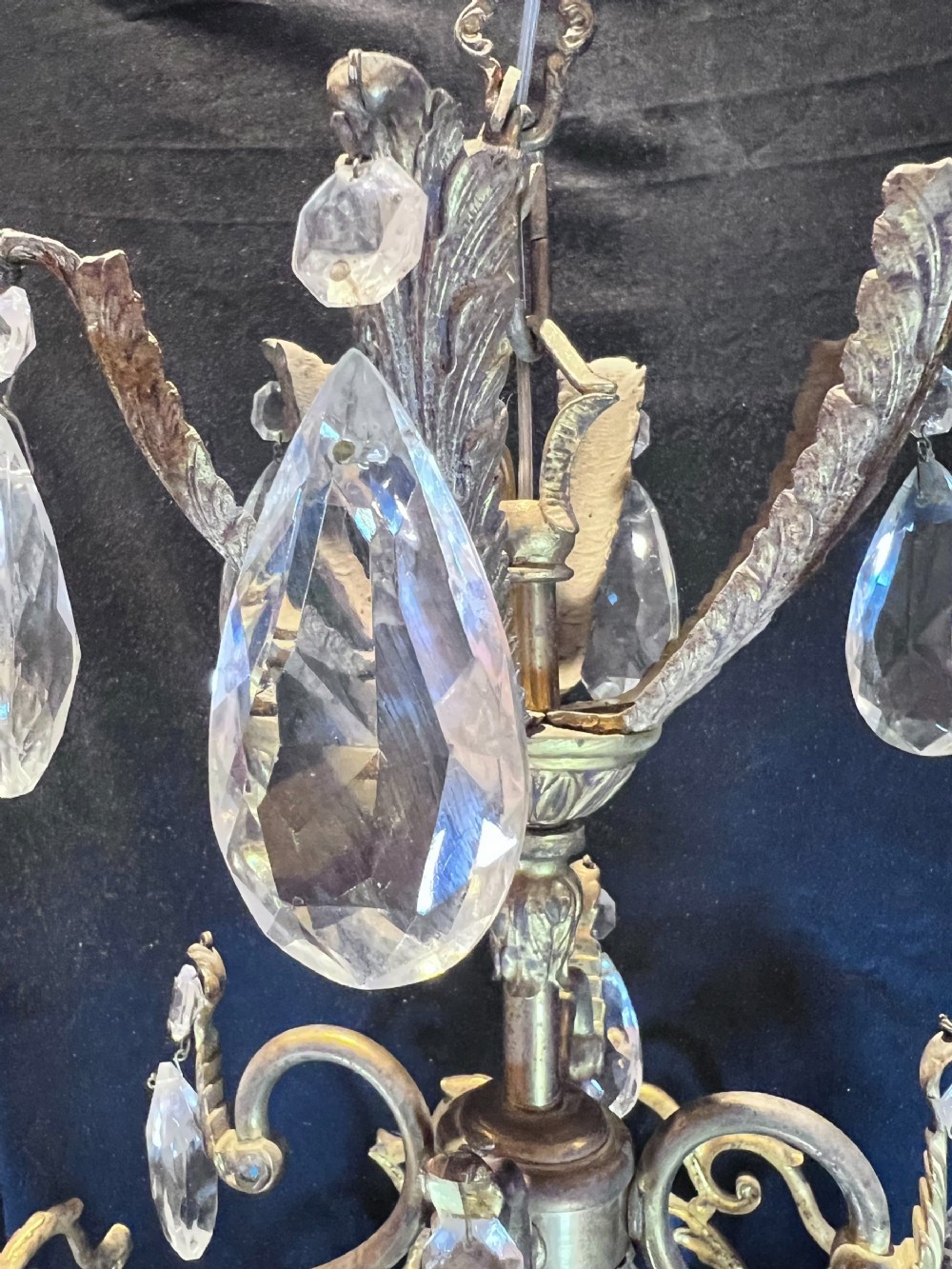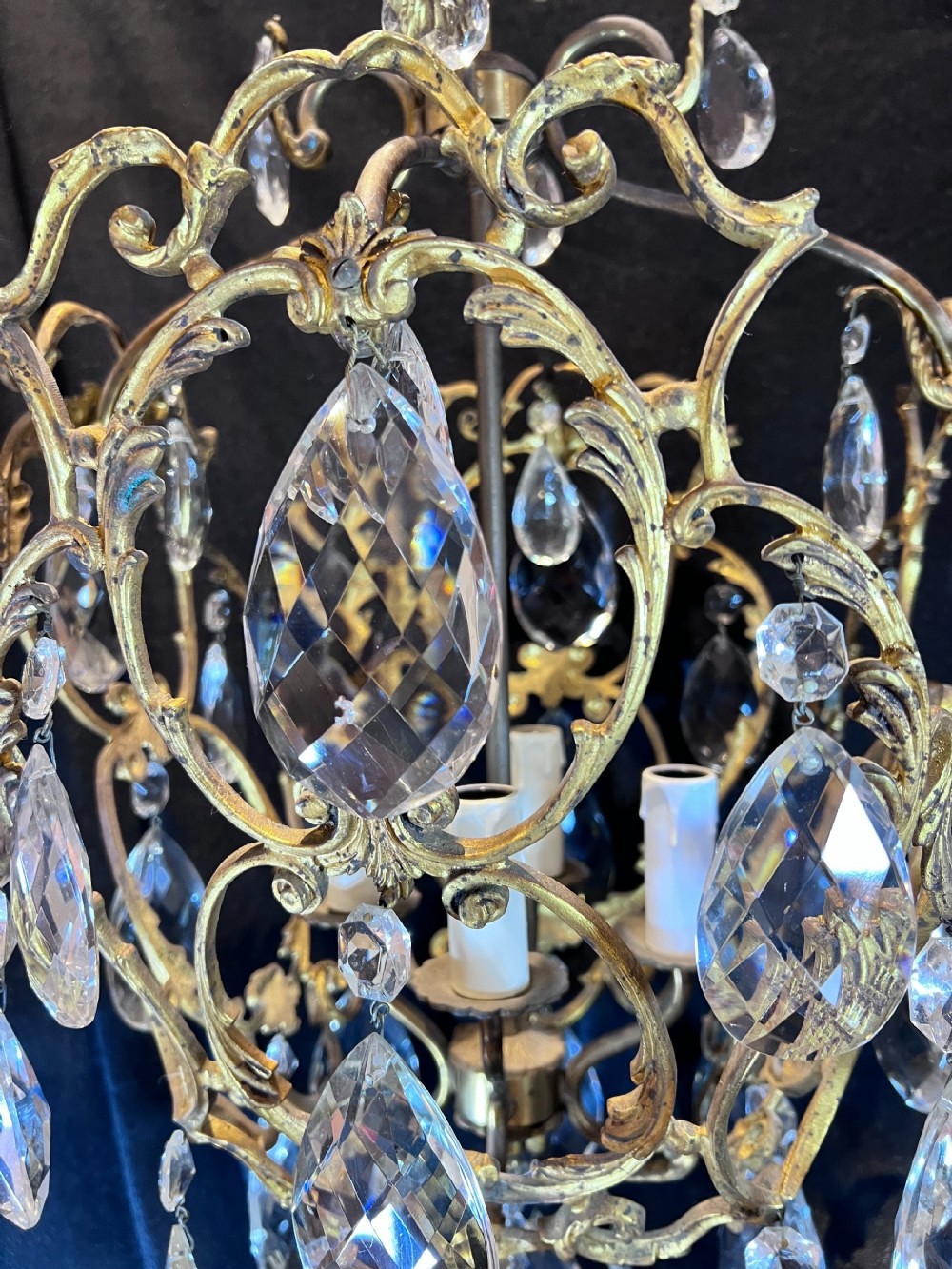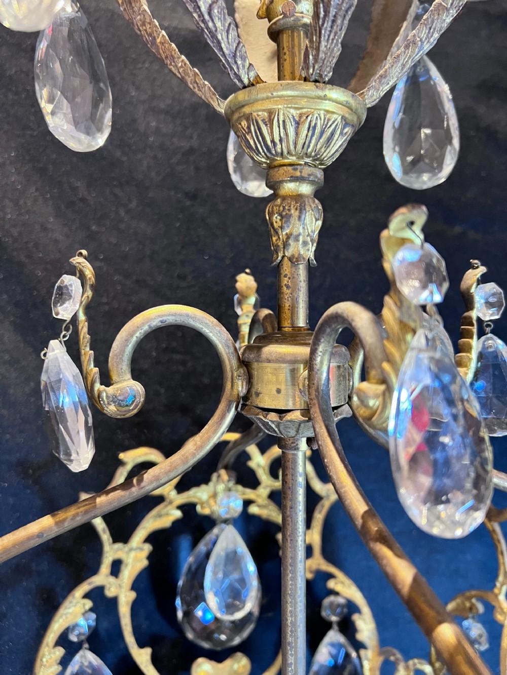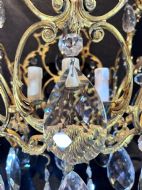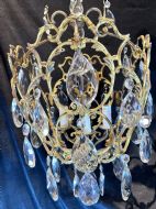 A Four Light Italian Cameo Brass and Crystal Antiqe Chandelier