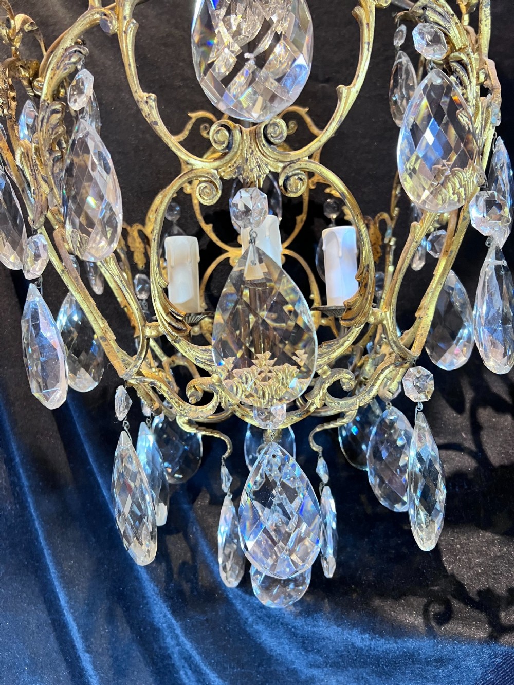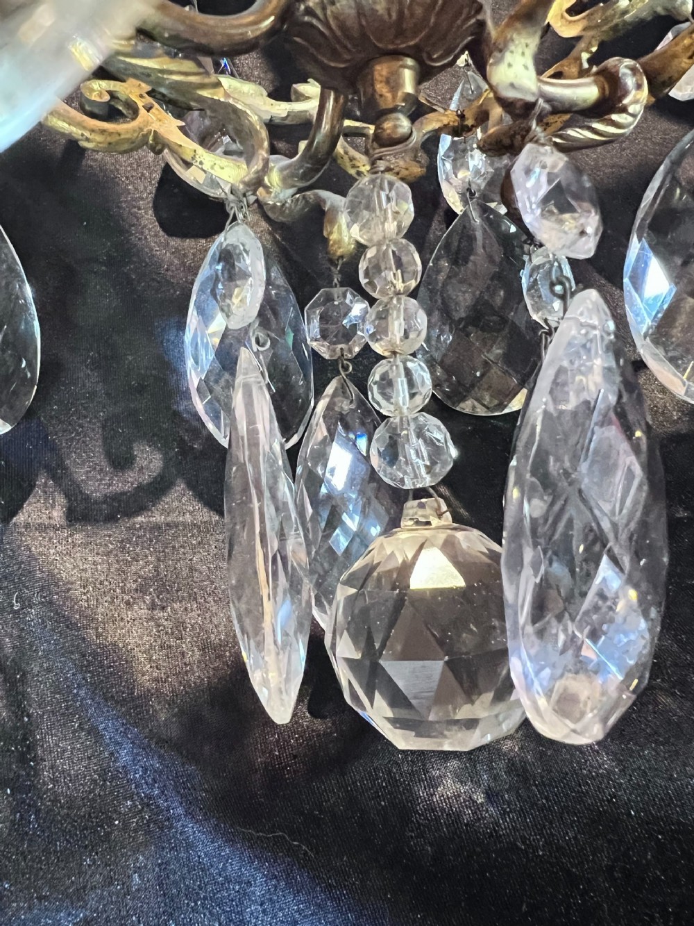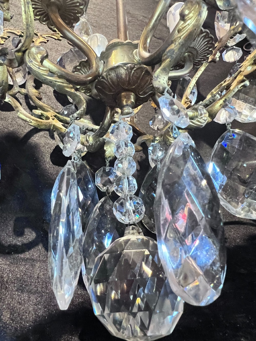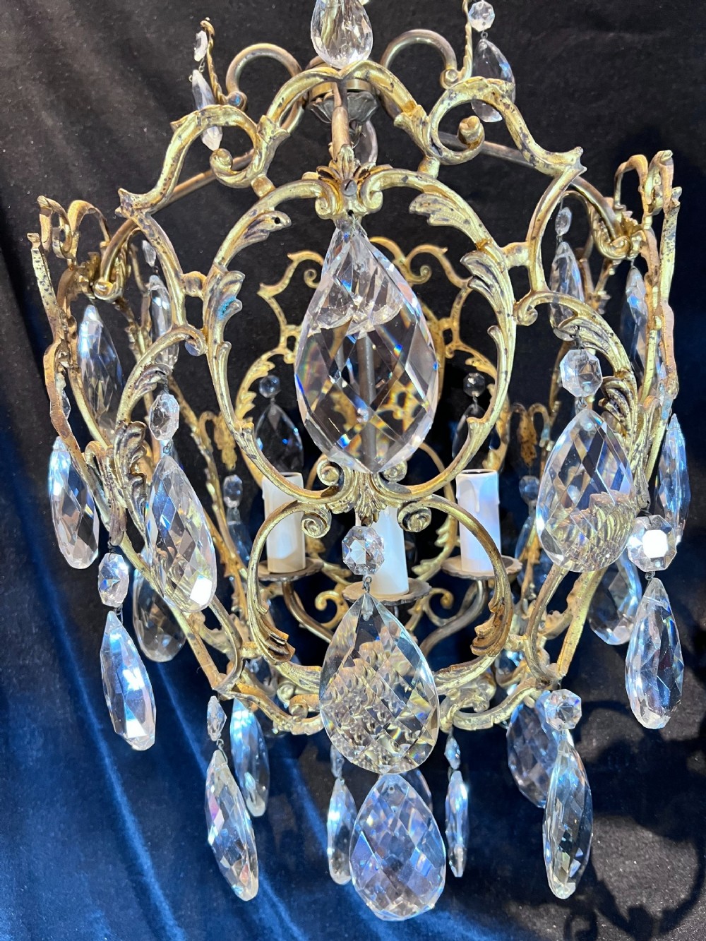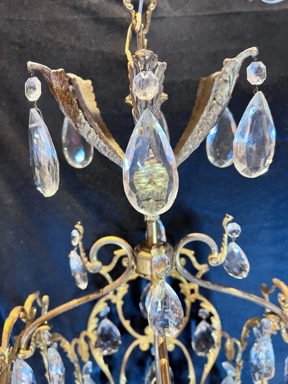 A Four Light Italian Cameo Brass and Crystal Antiqe Chandelier