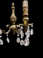 A Pair of Stunning Two Light French Gilt Brass and Crystal Antique Wall-lights