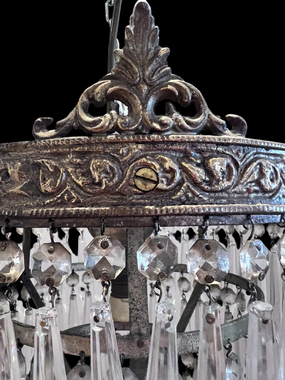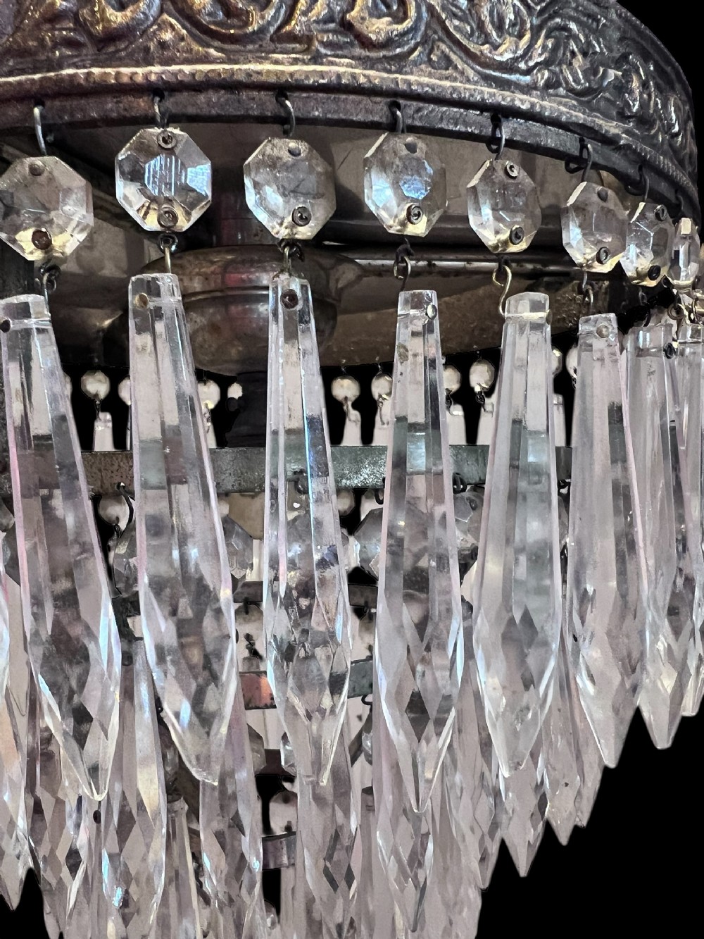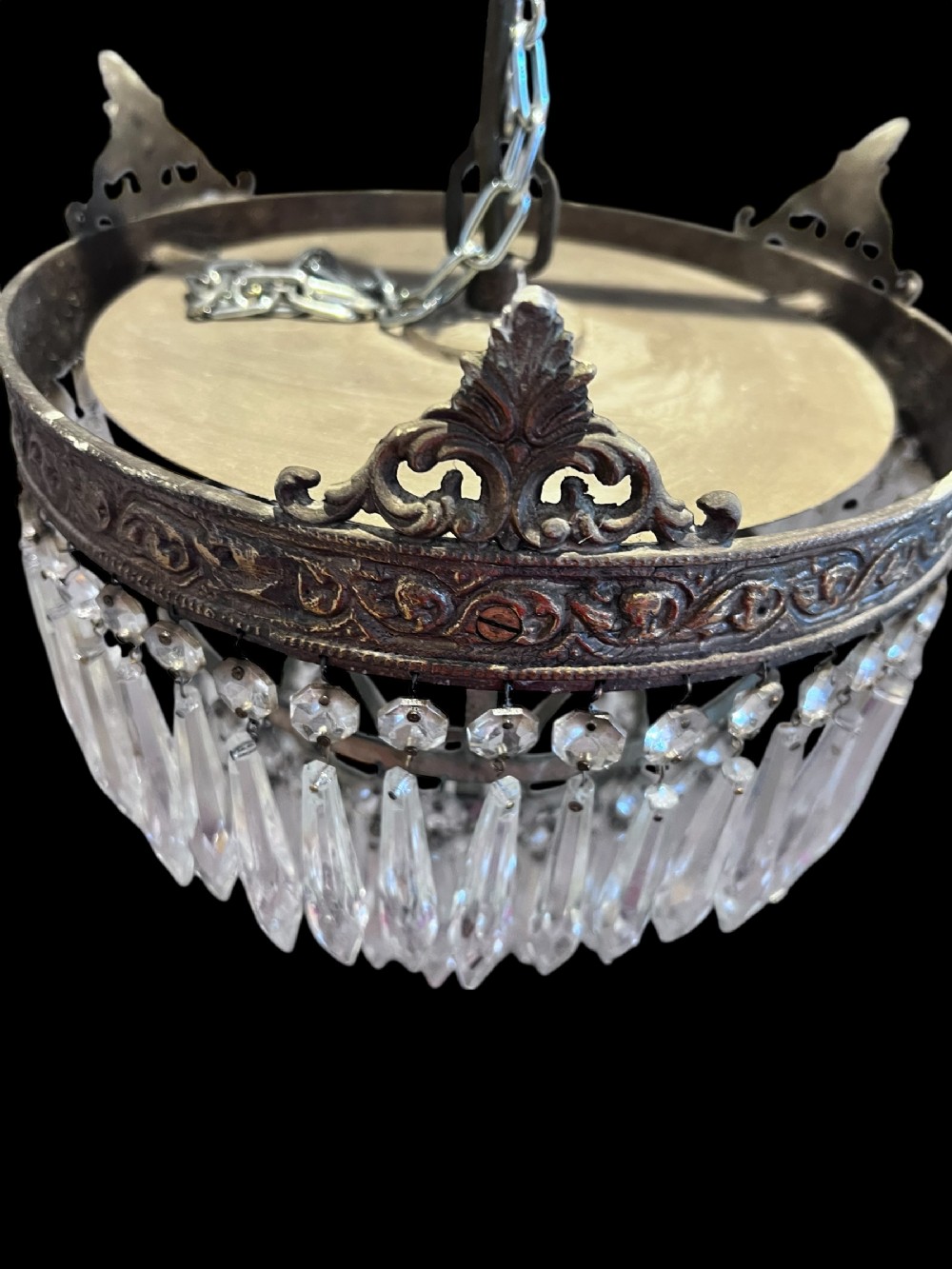 Antique Single Light French Waterfall Plafoniere Crystal Chandelier